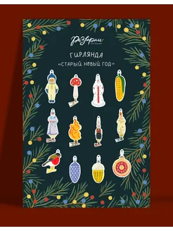 Фигурные открытки-гирлянда "Советские стеклянные игрушки"