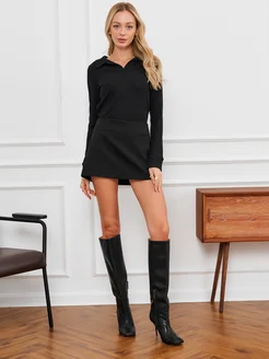 Лонгслив поло однотонный базовый в рубчик с длинным рукавом