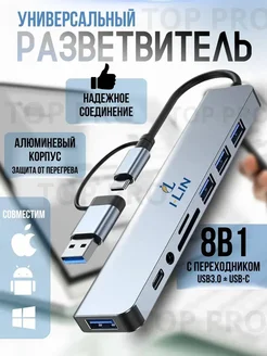 USB hub 8 в 1 разветвитель 3.0 хаб
