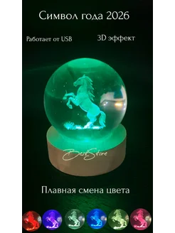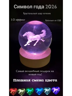 Хрустальный шар ночник Лошадь Символ 2026 статуэтка сувенир