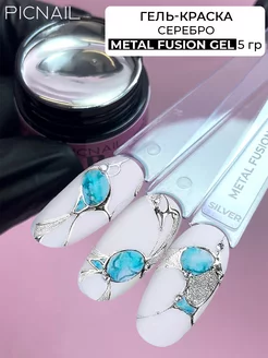 Гель краска металлик для ногтей для френча серебро Metal fus…