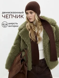 Шапка - шарф ушанка чепчик коричневая с длинными ушами