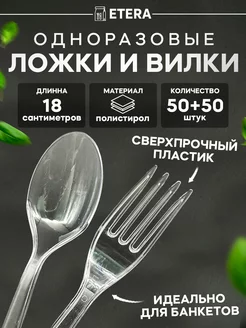 Набор одноразовой пластиковой посуды вилка, ложка 100 шт