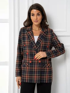 Пиджак в клетку удлиненный оверсайз