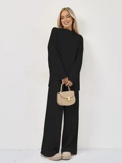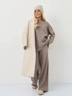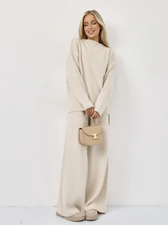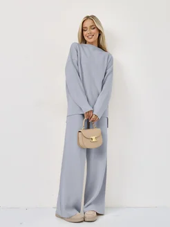 Вязаный трикотажный костюм теплый с брюками