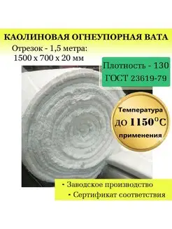 Вата каолиновая огнеупорная МКРР-130. Размер 1500х700х20 мм
