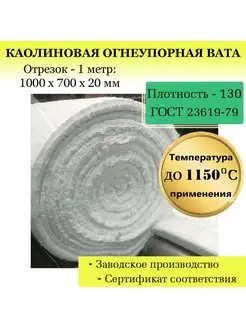 Вата каолиновая огнеупорная МКРР-130. Размер 2000х700х20 мм