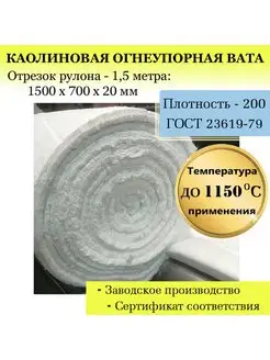 Вата каолиновая огнеупорная МКРВ-200. Размер 1500х700х20 мм