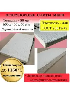 Каолиновые огнеупорные плиты МКРП-340, 4 пл. по 600х400х50мм