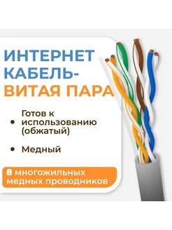 Интернет кабель-витая пара (4PR 24AWG,СU,СAT5E(GY) 8жил 100м