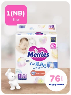 Подгузники для новорожденных, 1 NB, 3-5 кг, 76 шт