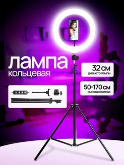 Кольцевая лампа цветная RGB 32 см штатив 170 см