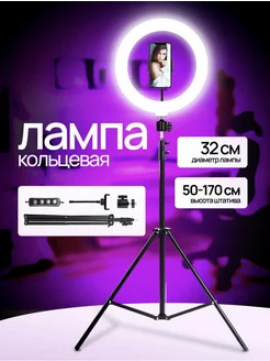 Кольцевая лампа цветная RGB 33 см штатив 160см