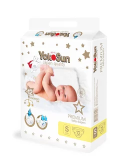 Подгузники детские на липучках размер S 3-6 кг 72 шт