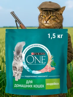 Сухой Корм Пурина Для Домашних Кошек c Индейкой 1,5 кг