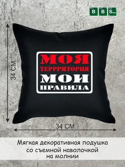 Декоративная черная подушка Моя территория Мои правила