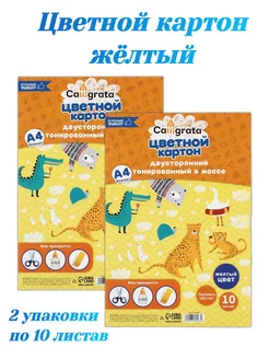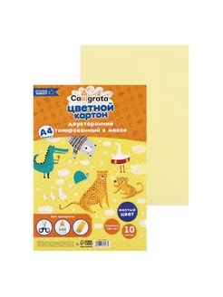 Картон цветной двусторонний А4, 10 листов, жёлтый