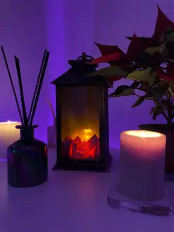 Светодиодный камин-фонарь с эффектом живого огня, 30х14 см