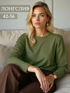 Лонгслив из хлопка однотонный базовый с принтом y2k