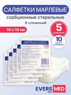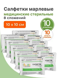 Салфетки марлевые медицинские стерильные 10х10 см, 10 уп