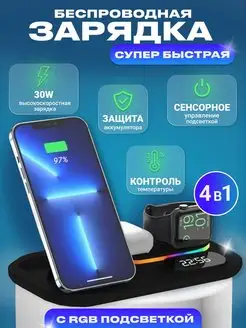 Беспроводная зарядка iPhone 3 в 1 с RGB подсветкой