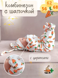 Комбинезон для новорожденных нательный на молнии с шапочкой