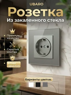 Розетка одинарная стеклянная встраиваемая с заземлением