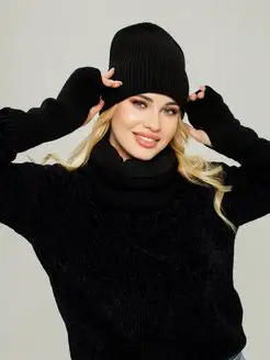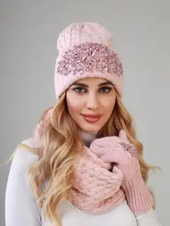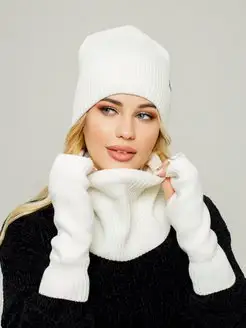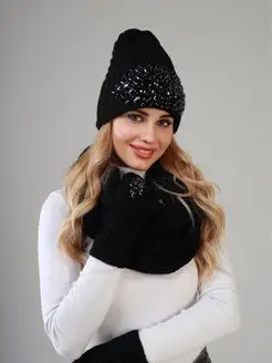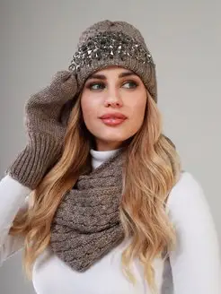 Зимний комплект теплая шапка + снуд + варежки