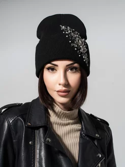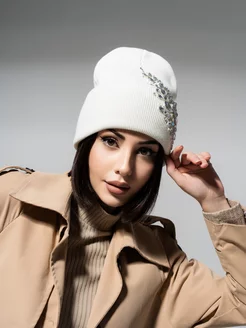 Шапка вязаная с камнями без подкладки