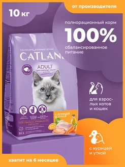 Сухой корм для кошек с курицей и уткой, 10 кг