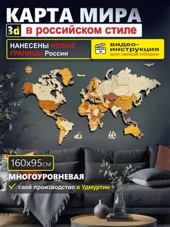 Карта мира из дерева с подложкой в комплекте 160 х 95 см
