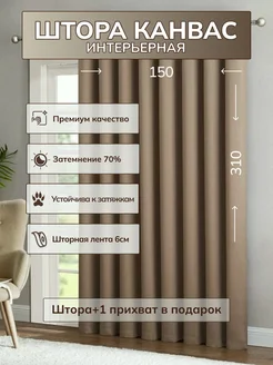 Штора интерьерная 150х310 см канвас светло-коричневая