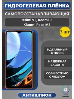 Гидрогелевая пленка на Redmi 9T 9 Poco M3 Антишпион (3 шт)