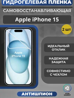 Защитная гидрогелевая пленка Apple iPhone 15 Антишпион 2 шт