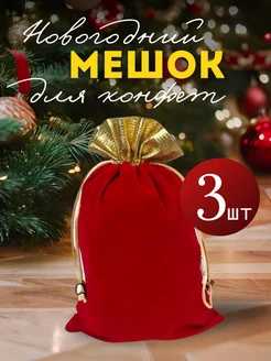 Мешок новогодний для подарков и сладостей 3шт (бархат)