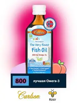 Норвежский рыбий жир, омега 3, персиковый вкус, 800 мг