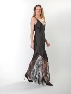 Шелковое платье комбинация с кружевом Exclusive