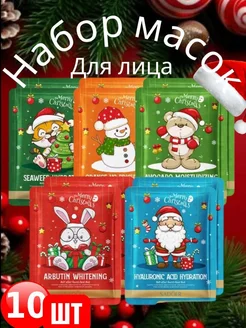 Набор тканевых масок для лица новогодний подарочный 10 шт
