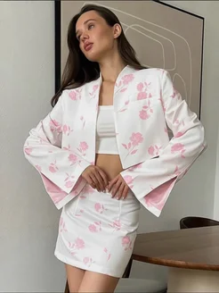 Костюм двойка укороченный пиджак юбка