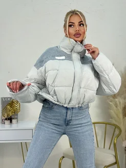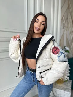 Куртка белая зимняя Оверсайз с джинсой