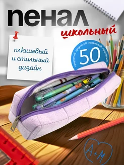 Пенал школьный подростковый на молнии плюшевый вместительный
