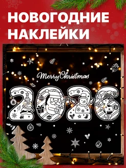 Наклейки новогодние на окна цифры 2026 многоразовые без клея
