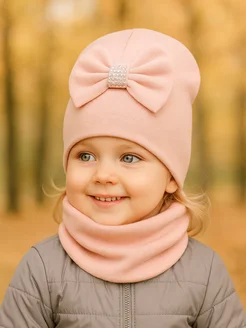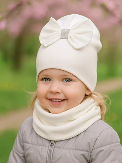 Шапка демисезонная со снудом комплект с бантом