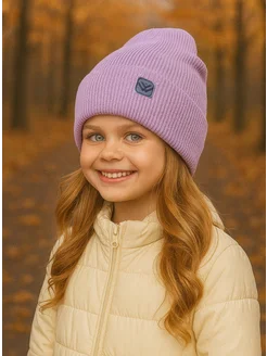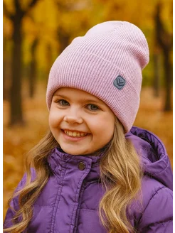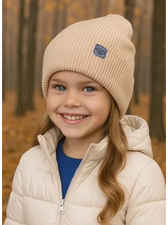 Шапка осенняя бини вязаная с отворотом