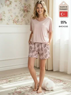 Турецкая вискозная пижама (футболка и шорты)