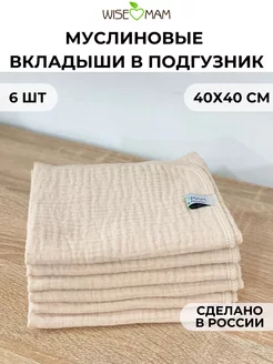 Вкладыши муслиновые в многоразовый подгузник, 6 штук