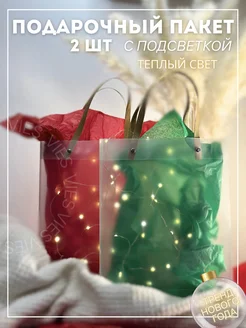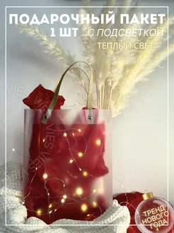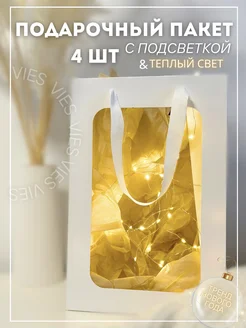 Подарочный набор матовый пакет с гирляндой и тишью 4 шт