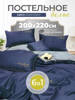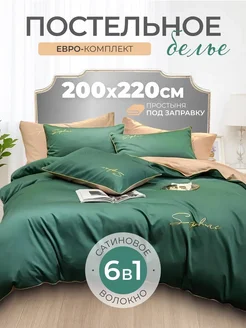 Постельное белье Евро комплект однотонный сатин 6 в 1