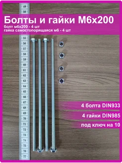 Болт M6x200 оцинкованный с гайкой стопорящейся 4 шт