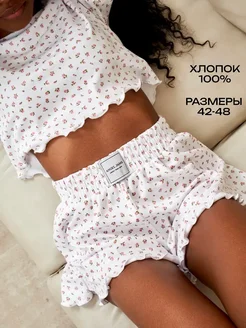 Пижама с шортами и футболкой хлопковая домашний костюм